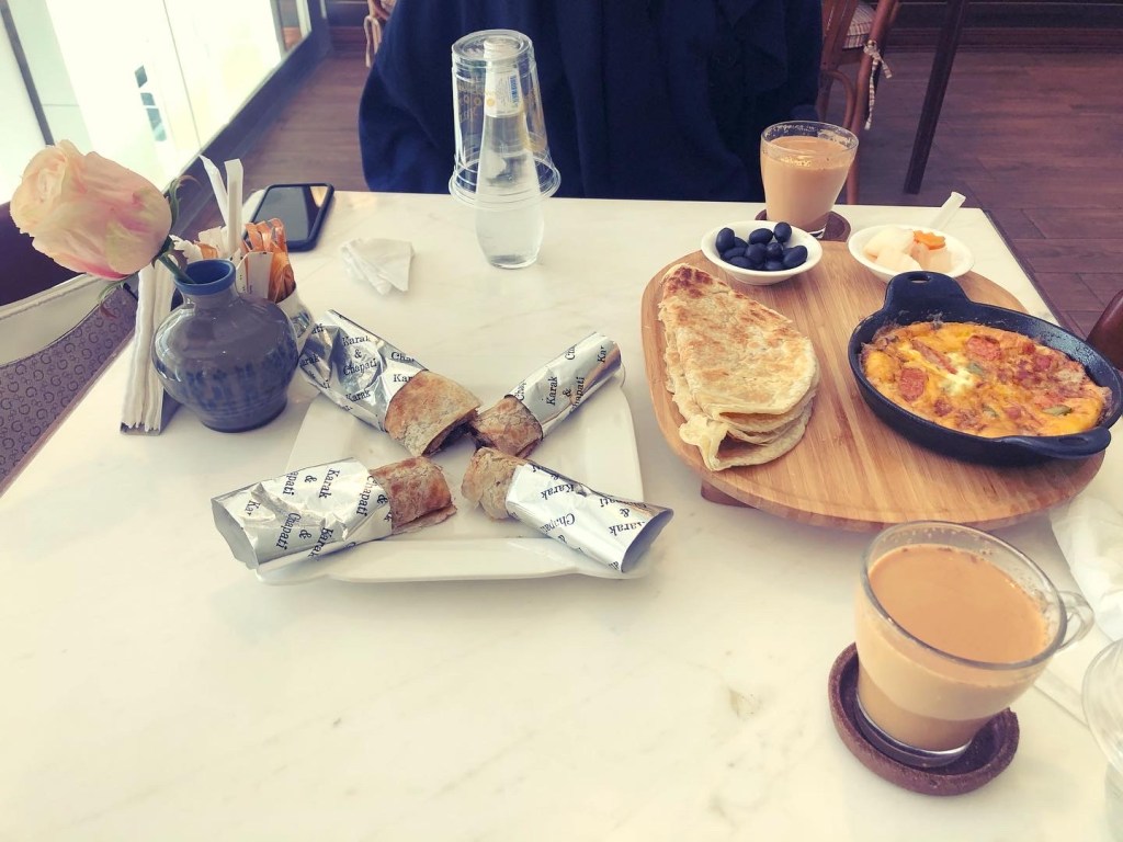 تطبيق النوم أخبرني بأني نمت ثمان ساعات وسبع دقائق وبجودة نوم تصل إلى ٩٦٪ وهذا ما لم أحققه منذ فترة طويلة، من حسنات تعليق الدراسة! دون رؤية جودة النوم النتيجة واضحة ومنعكسة على كل شيء. أرسلت لزينب بشكل مفاجئ أمرك نروح نفطر؟ قالت ايش رايك أنا أمرك؟ ويا خيارات الحياة الجديدة! هذه المرة الأولى تكون زينب هي السائقة. الجوع أخذ مكانه منا ونريد الذهاب إلى مطعم لم نذهب إليه من قبل، اقترحت كرك وشباتي، كان خيارًا مناسبًا. اليوم ضحكت الضحك الذي يمكنني وصفه بأنه نعمة، رزق أو هبة.. لن أسهب هنا فيما حدث مع زينب لكن قضينا ثلاث ساعات كانت جرعة سعادة وتعديل مزاج. مع ملاحظة لم يمكن في المطعم أحد سوانا! طبعًا معظم الوقت قضيناه تقييمًا لقيادتها بحكم خبرتي التي تمتد لسنة وبضعة أشهر🌛يمكنني القول بأن هذا هايلايت يومي.