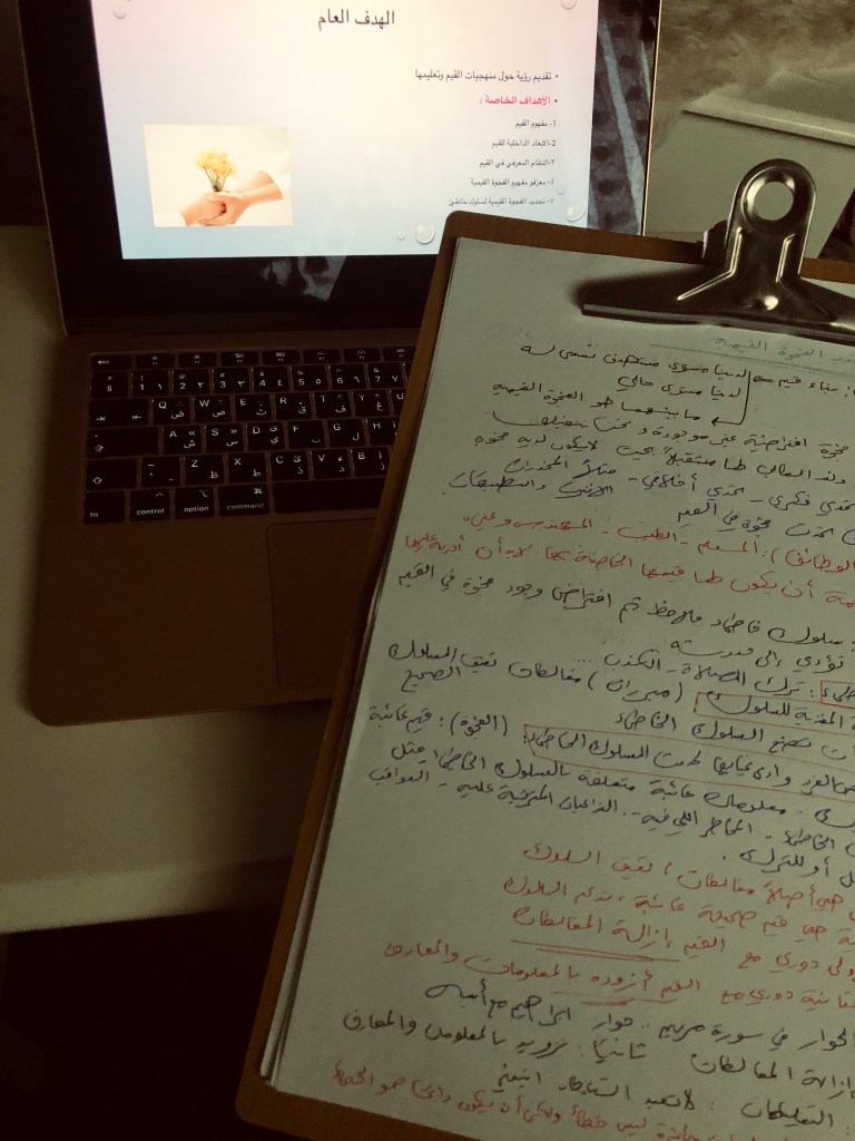 اجتماع اليوم كان تحت رعايتنا نحن معلمات علوم المتوسط، هند، رحاب ثم أنا. بالأمس اطلعنا على محاضرة تربوية مدتها ساعة ونصف ثم كل واحدة اخترصت نصف ساعة واليوم عرضناها على باقي المعلمات. صوتي مرهق والكحة كانت حاضرة لذا اعتذرت منذ البداية وحاولت اختصار كلامي بأكبر قدر ممكن. لم أفطر وبعد اللقاء عدت للنوم مرة أخرى، طوال اليوم كنت مرهقة جدًا.. عندما استيقظت وجدت استبيانًا في مجموعة المدرسة وفورًا أنجزته حتى لا أنساه ومن هنا لدي هذه المشكلة وهي الاطلاع والرد على الرسائل أثناء نومي أو فور استيقاظي.