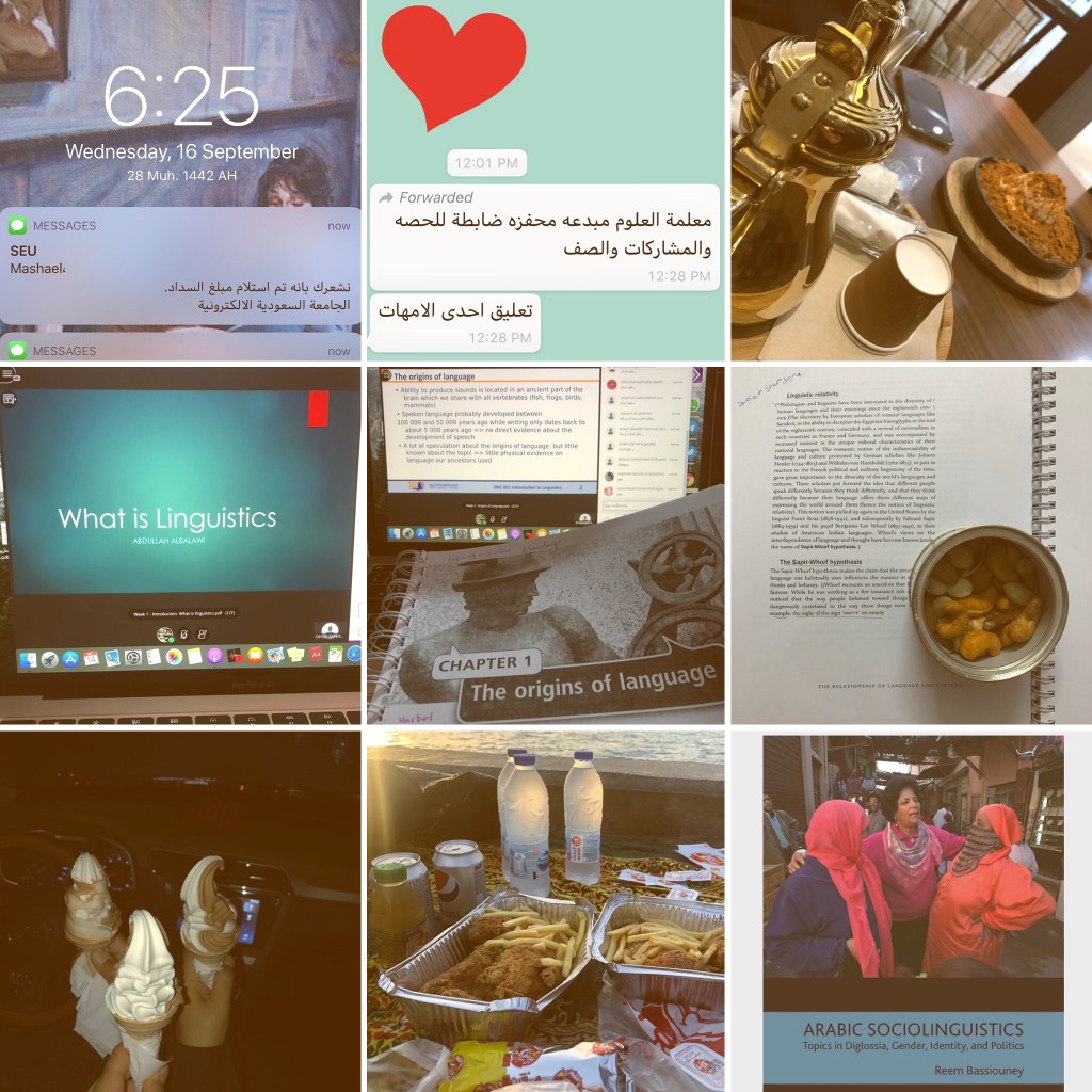 منذ الأربعاء تغيرت مواضيع بحثي في قوقل لتتجه إلى فقرات صغيرة مررت عليها في محاضراتي. أعيش دهشة من جمال ما أتلقاه هذه الأيام. نومي وأكلي أفضل من السابق، النادي ما زلت غير قادرة على الذهاب في كل الأيام المتاحة لكن مسبح الجمعة ثابت. لم يغطي هذا التحسن نفسيتي فالعكس من الأسبوعين الماضية لم أكن على ما يرام. وصلني تعليق أم طالبة في الصف الرابع، أتذكرون قلقي من تدريسهم عن بعد؟ جاء تعليقها وكأنه رسالة موجهة وكأنه مواساة، في الحقيقة جربت معهم طريقة تحفيز هي متعبة لي لكن نتائجها سحرية. سأكتب عنها في وقت لاحق إن شاء الله. سمعت حلقات بودكاست كثيرة خلال الأسبوع وبدأت قراءة Arabic sociolinguistic topics in diglossia, gender, identity and politics. وكتابة يومياتي في أحسن حالاتها، اليوم الواحد يكتب في صفحات عدة. خرجة الخميس إلى البحر كانت بسيطة جدًا ومثالية لأعلى درجة ممكنة، ضحكت من قلب.