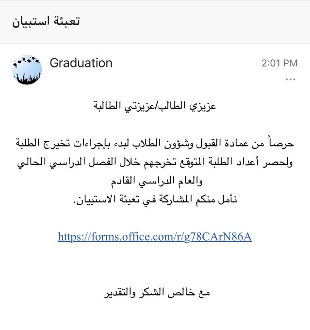 وصلتني الرسالة التالية من الجامعة، أسعدتني وجعلتني أبتسم:
