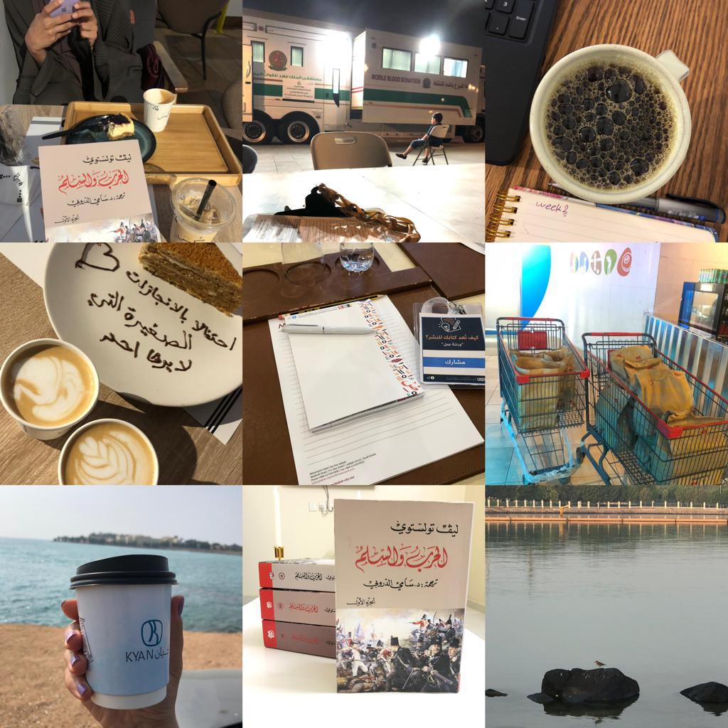 بدأت -أخيرًا- قراءة الحرب والسلم مع مجموعة في تويتر، ما زلت متأخرة عنهم ويلزمني الانتهاء من المجلد الأول قبل يوم الأحد القادم حيث البداية المقررة للمجلد الثاني، وتمكنت بفضل الله التبرع بالدم للمرة السادسة، واحتفلت مع رحاب بالإنجازات الصغيرة التي لا يراها أحد، جربت قهوة V60 ليومين بعدها كاد قلبي أن يغادر صدري وتأكدت هذا النوع لا يناسبني، وعدت لفقرة وثائقي الجمعة، وجربت كتابة نصوص سردية بناء على كلمة واحدة، وخرجت أكثر من مرة خلال الفترة الماضية: ريم، واللقاء الأول المنتظر. زينب، وخلود، وآمال، ورحاب. ومشاوير من نوع: طريق طويلة + قائمة أغاني مفضلة + مشروب ساخن وامشي إلى أن يشاء الله، ورحلتين مرة مع الطالبات وأخرى للمعلمات فقط وكلتاهما كانت منعشة! كذلك حضرت ورشة عمل: كيف تعد كتابك للنشر؟ من تنظيم أدب مع هيئة الأدب والنشر والترجمة، وقضيت أوقات عائلية جيدة جدًا بالتحديد مع والدتي وجدتي حفظهما الله، ولا أنسى بداية جمال الطقس في جدة هذا وحده يعدل المزاج، ويسمح بالحصول على جرعات مكثفة من البحر، عدت إلى موكا كيان من جديد، الصدفة العجيبة أنها كانت إدمان الفترة نفسها من السنة الماضية بالاعتماد على تذكيرات سنباتشات.