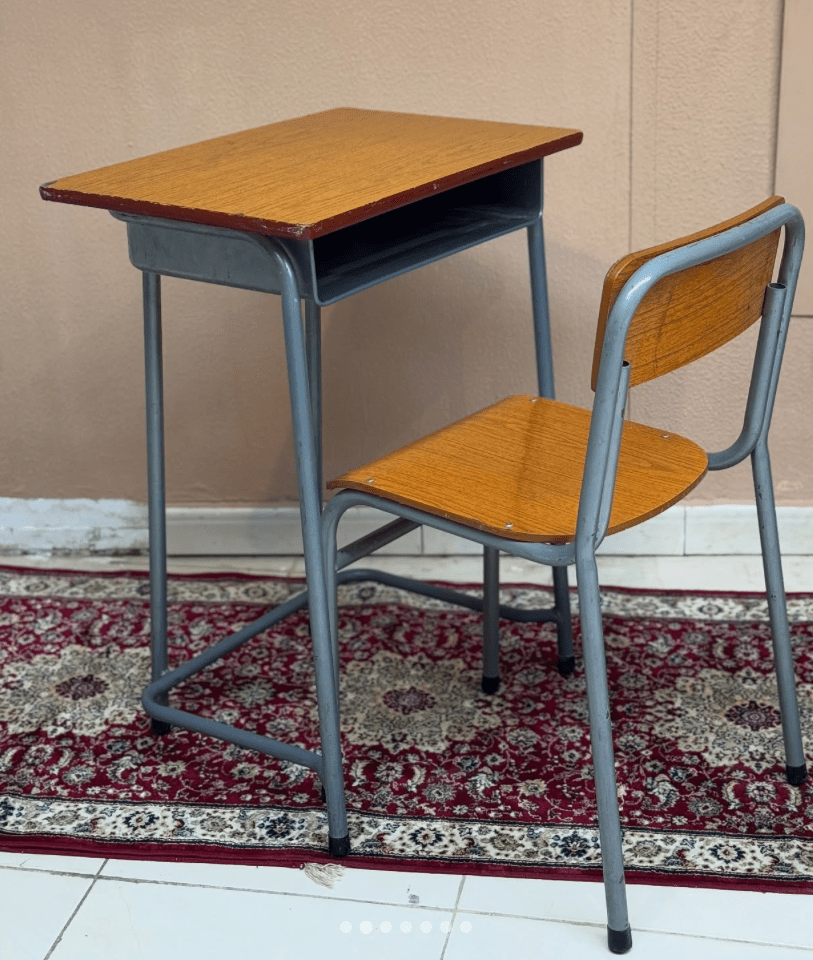بعده جاء مكتب خشبي… كان صديقي من الصف الأول حتى الرابع ابتدائي. لم أجد له أي صورة، لكنه كان نسخة معدّلة عن طاولات المدارس وقتها. ولا أعرف هل كان اختياري أم اختيار أهلي؟ مع أنهم عادة يتركون لي حرية القرار. لماذا حصلت في المنزل على مكتب يشبه مكاتب المدرسة؟ سؤال ظل بلا إجابة.