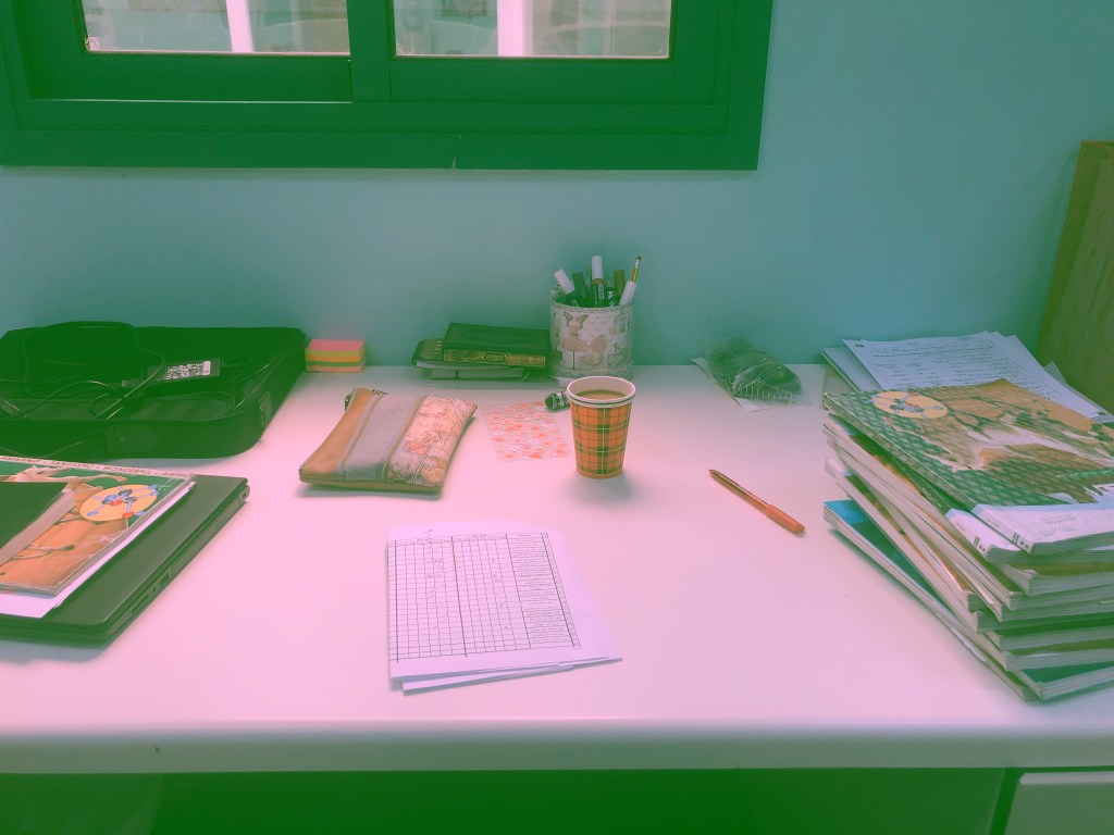 خرجت متأخرة دقائق عن الوقت المعتاد وهذا يعني تأخري عن الطوابير ويوم الأحد لدي حصة أولى أي يلزمني التواجد خلال الاصطفاف الصباحي. عندما وصلت علمت أن هناك تغيير في ترتيب الحصص وصارت حصتي الثانية، طلبت من منسقة الجدول أن تكون حصصي متتالية على أمل أن يبقى لدي وقت لأدرس اختبار اليوم. وفعلًا صار حصصي ٢-٣-٤.